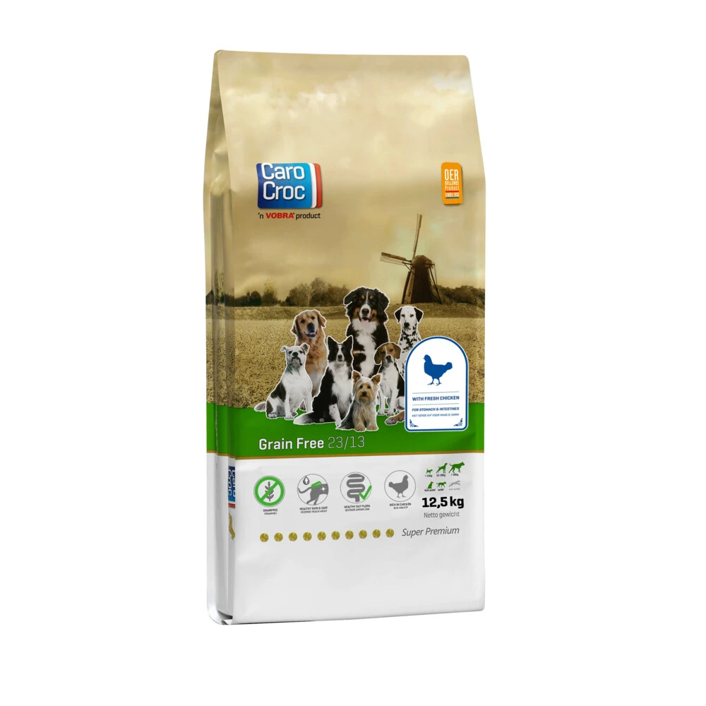 CaroCroc Hondenvoer GraanvrijMet CaroCroc Grain Free schotel jij jouw hond brokken zonder granen voor. Jouw gevoelige viervoeter krijgt hiermee de perfecte ondersteuning voor een gezonde maag- en darmfunctie bij voedselovergevoeligheid.Deze hypoallergene brokken zijn bereid met verse kip en bovendien rijk aan gevogelte en aardappel. Hiernaast is er extra zalmolie toegevoegd, wat bijdraagt aan een gezonde huid en vacht. De toegevoegde bietenpulp draagt bij aan een goede darmflora en daarmee een g
