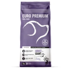 Euro-Premium Adult Giant Kip – RijstEuro-Premium Adult Giant – Kip & Rijst is een volledige, super-premium voeding voor volwassen honden van grote rassen (vanaf 1 jaar en vanaf 45kg volwassen gewicht). Deze voeding is speciaal samengesteld voor honden die een grote brok verkiezen. Een optimale weerstand en een gezonde spijsvertering worden ondersteund door de toevoeging van een unieke blend van plantenextracten – rijk aan antioxidanten – aangevuld met prebiotica en β-glucanen.Een optima
