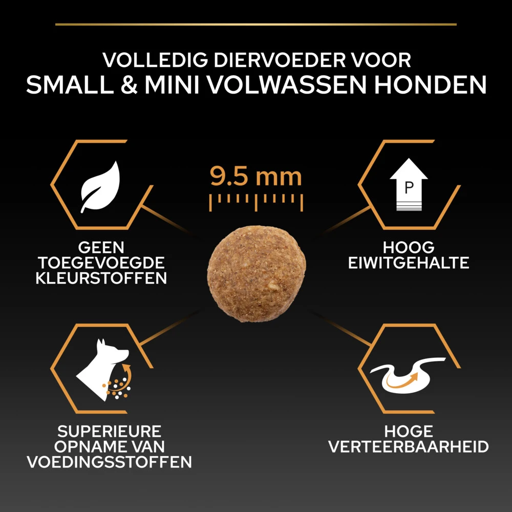 Pro Plan Adult Small & Mini Everyday Nutrition KipPro Plan Adult Small & Mini Everyday Nutrition Kip (voorheen OptiBalance) is speciaal samengesteld voor de nutritionele behoeften van volwassen honden van kleine rassen en is ontworpen om de gezondheid en het welzijn te ondersteunen. De voordelen van Pro Plan Adult Small & Mini Everyday Nutrition:Ondersteunt het snelle metabolisme van kleine hondenHet vermindert tandplak tot 40%Bevat uitgebalanceerde mineralen, vitamine DHet heeft een