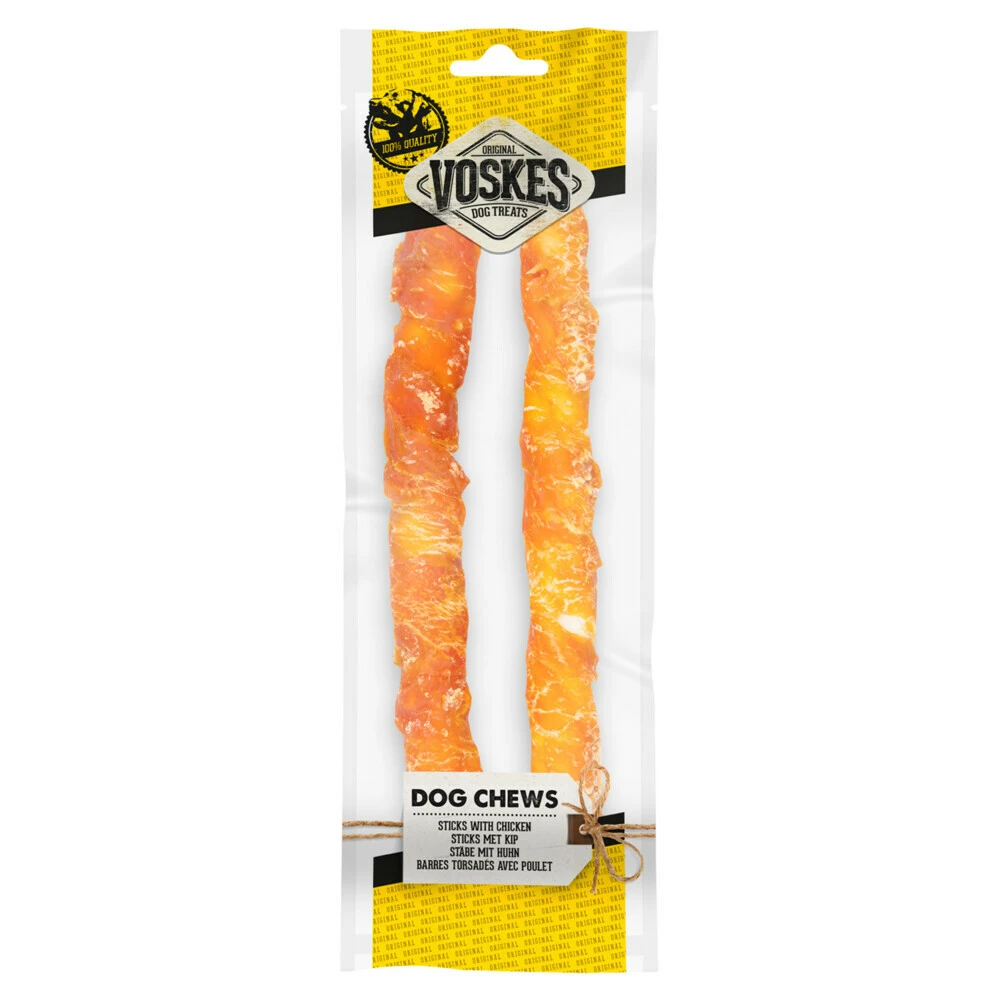 Voskes Kip PakketMalse kipfilet, of runderhuid met kip er omheen? Elke hond geniet hiervan. Dit pakket bevat 3 heerlijke kip snacks voor je hond: kipfilet, kipsticks en kippenpoten.De Voskes Hondensnack Kip Filet Bites Wet is een smakelijke kip traktatie voor je hond, geschikt als tussendoortje en is een aanvulling op de dagelijkse voeding.De Voskes Stick Met Kip is een heerlijke snack voor jouw huisdier. Elke verpakking bevat twee sticks. Gemaakt met kip.De Voskes Hondensnack Kippenpoten